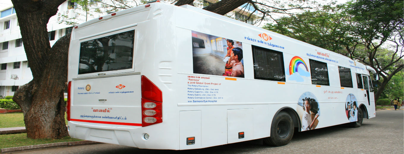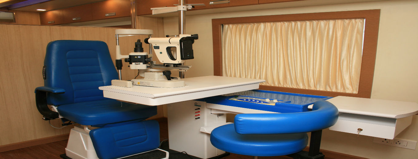First of its kind in the Country, this custom made Air-conditioned Bus is equipped with Ophthalmic Diagnostic equipment like Auto-refracto Meter, Non-contact Keratometer, Refraction Unit, Slit lamp for Biomicroscopy, Ophthalmic Chair Unit and an Optical Counter to provide the entire range of services.